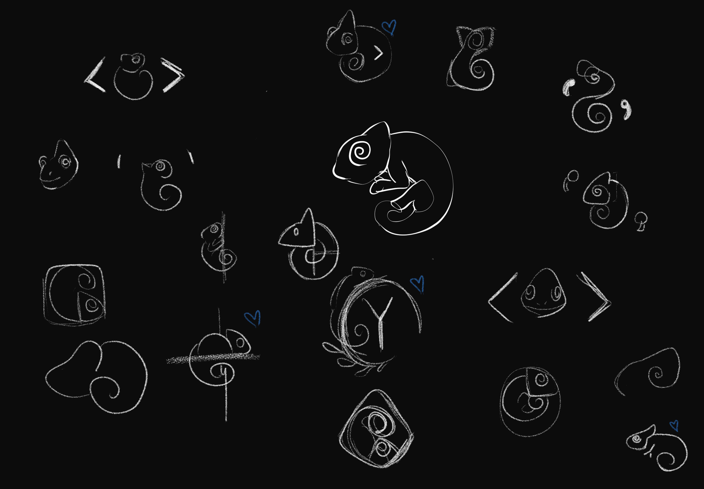 For the logo, after a lot of research for inspiration, I came up with sketches of an idea that could represent: Adaption, Creativity and Persception. That's why a chameleon, where it reflects this essence of mine. According to Tinga Tinga Art Website: