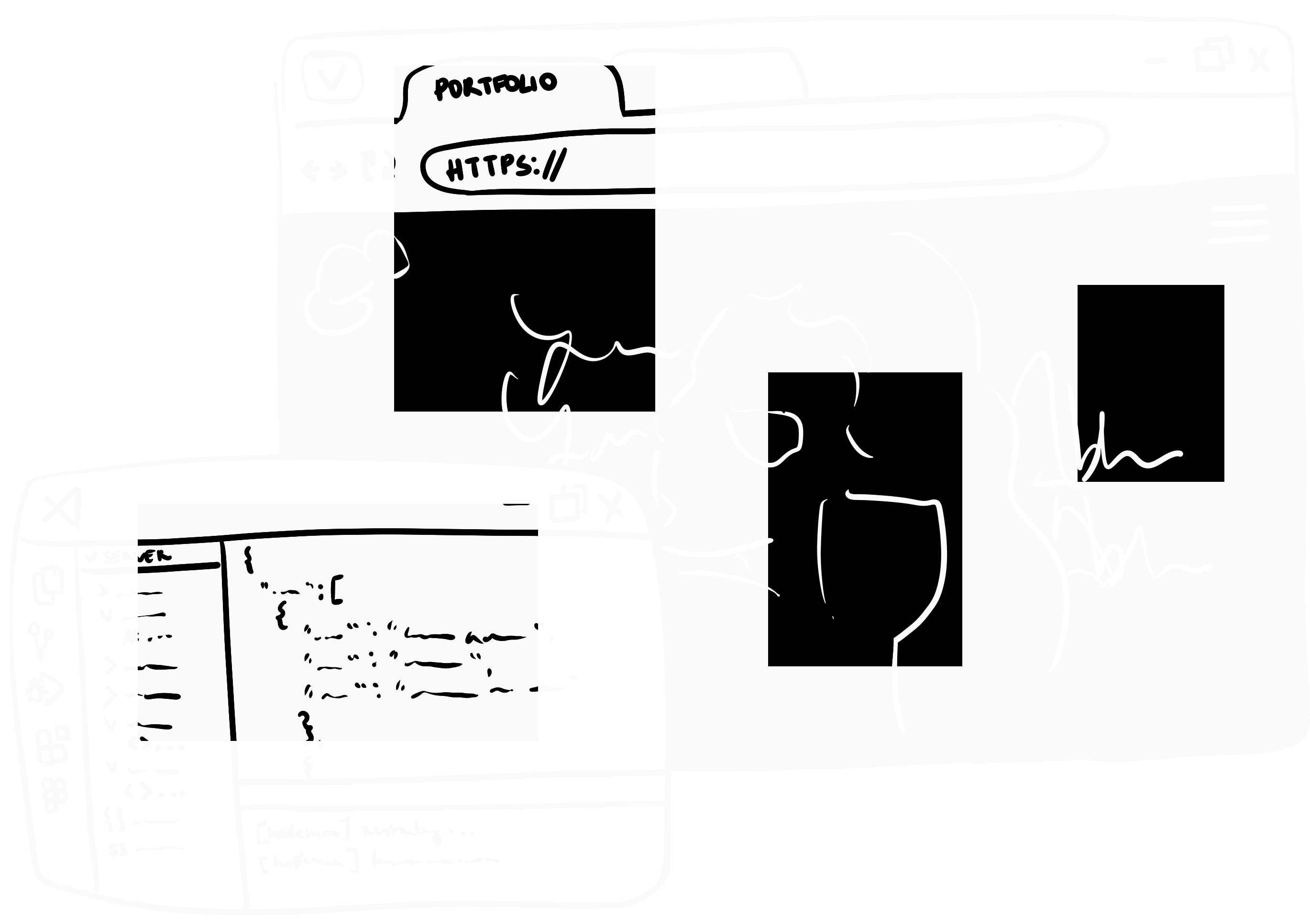 I want to begin this topic with a nice fact! All the drawings in this portfolio were made by me. Having an experience as black and gray tattoo artist, I wanted to translate this artistic side of my in this portfolio. That's why the color palette plays with black & white contrast, but also adding a playful 3D effect as this is a virtual space.